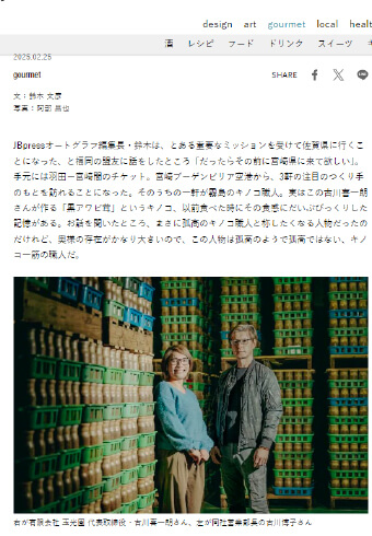 【記事】人生をキノコと歩む職人夫婦が作る宮崎牛と戦える孤高のビスポークキノコ|きのこの玉光園(JBpress)