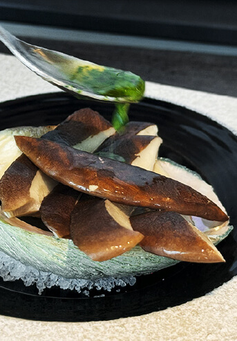 玉光園の黒あわび茸は、その質の高さから、一流の料理人に認められており、独特な食感と見た目、そして素材としてのポテンシャルに評価をいただいております。