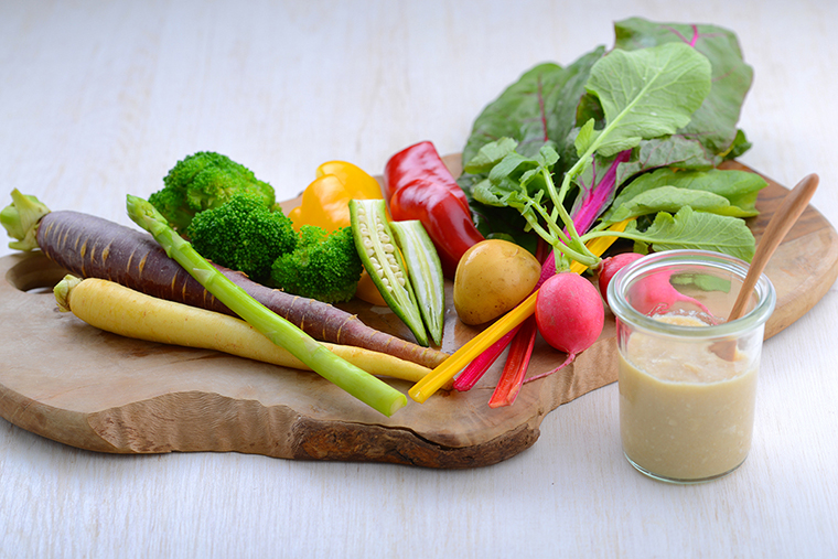 えのき茸や塩麹、甘酒で作った、旨味あふれるオイル不使用のヘルシーソース。野菜につけて食べたり、白身魚や鶏肉などあっさり食材のソースとしてもおすすめです。ヘルシーなのでたっぷりつけてどうぞ。
